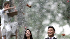 4년만의 새앨범인 4집 '싸집'으로 돌아온 싸이가 26일 J ART 스튜디오와 원당의 종마 공원에서 타이틀 곡인 '연예인' 뮤직비디오를 촬영했다. 싸이가 신인 여 탤런트 노성은과 원당 종마 공원에서 낙엽을 맞으며 데이트를 하는 장면에서 스태프가 낙엽을 너무 많이 쏟아 부어 NG가 나고 있다./손용호...