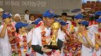 27일 천안 유관순 체육관에서 열린 신세계 이마트배 2006 여자프로농구 여름리그 챔피언 결정 5차전에서 우승한 삼성생명 선수들이 기념 촬영을 하고 있다/천안=김영민 기자 ajyoung@osen.co.kr [Copyright ⓒ 한국 최고의 스포츠 엔터테인먼트 전문 미디어 OSEN(www.osen.co.kr) 무단전재 및 재배포 금지]