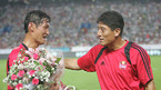 5일 서울 상암월드컵구장에서 벌어진 FC 서울과 FC 도쿄의 친선경기 하프타임 때 서울의 플레잉코치 최용수가 선수 생활을 마감하는 은퇴식을 가졌다. 이장수 감독이 최용수에게 꽃다발을 주고 격려하고 있다./상암=손용호 기자spjj@osen.co.kr [Copyright ⓒ 한국 최고의 스포츠 엔터테인먼트 전문 미디어...