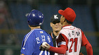 4일 대전 야구장에서 열린 한화 이글스와 삼성 라이온즈의 경기 한화의 5회말 1사 2,3루서 김민재의 2루 땅볼 때 3루주자 이범호가 홈으로 대시했으나 포수 진갑용에게 태그아웃되고 있다./대전=김영민 기자ajyoung@osen.co.kr [Copyright ⓒ 한국 최고의 스포츠 엔터테인먼트 전문 미디어 OSEN(www.osen.co.kr) 무단전재...