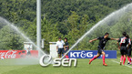 아시안컵 예선 대만전 엔트리 선발을 위해 지난 6일 파주 NFC에 소집된 베어벡호 1기 선수들이 이틀째인 7일 오전 뜨거운 햇살 아래 훈련을 소화했다. 훈련 도중 스프링클러가 작동돼 시원한 물줄기가 치솟고 있다./파주=박영태 기자 ds3fan@osen.co.kr [Copyright ⓒ 한국 최고의 스포츠 엔터테인먼트 전문 미디어...