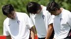 아시안컵 예선 대만전 엔트리 선발을 위해 지난 6일 파주 NFC에 소집된 베어벡호 1기 선수들이 이틀째인 7일 오전 뜨거운 햇살 아래 훈련을 소화했다. 훈련이 끝난 후 고트비 코치, 홍명보 코치, 통역 박일기 씨(오른쪽부터)가 하의를 걷어올리고 피부색을 비교하고 있다./파주=박영태 기자 ds3fan@osen.co.kr [Copyright ⓒ 한국...