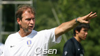 아시안컵 예선 대만전 엔트리 선발을 위해 지난 6일 파주 NFC에 소집된 베어벡호 1기 선수들이 이틀째인 7일 오전 뜨거운 햇살 아래 훈련을 소화했다. 베어벡 감독이 선수들에게 손가락으로 훈련 내용을 설명하고 있다./파주=박영태 기자 ds3fan@osen.co.kr [Copyright ⓒ 한국 최고의 스포츠 엔터테인먼트 전문 미디어...