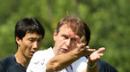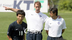 아시안컵 예선 대만전 엔트리 선발을 위해 지난 6일 파주 NFC에 소집된 베어벡호 1기 선수들이 이틀째인 7일 오전 뜨거운 햇살 아래 훈련을 소화했다. 베어벡 감독이 홍명보 코치가 바라보는 가운데 공을 차고 있다./파주=박영태 기자 ds3fan@osen.co.kr [Copyright ⓒ 한국 최고의 스포츠 엔터테인먼트 전문 미디어...