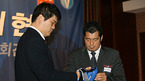 8일 오전 서울 웨스틴 조선호텔에서 '모래판의 황태자' 이태현의 프라이드 FC 진출 기자회견이 열렸다. 다카다 노부히코 프라이드 총괄본부장이 이태현에게 글러브를 끼워주고 있다./김영민 기자ajyoung@osen.co.kr [Copyright ⓒ 한국 최고의 스포츠 엔터테인먼트 전문 미디어 OSEN(www.osen.co.kr) 무단전재...