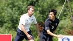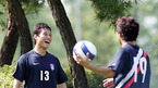 아시안컵 예선 대만전 엔트리 선발을 위해 지난 6일 파주 NFC에 소집된 베어벡호 1기 선수들이 나흘째인 9일 오전 뜨거운 햇살 아래 훈련을 소화했다. 이을용이 안정환과 짝을 이뤄 훈련을 하다 크게 웃고 있다./파주=손용호 기자spjj@osen.co.kr [Copyright ⓒ 한국 최고의 스포츠 엔터테인먼트 전문 미디어...