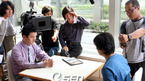 영화 '나의 친구, 그의 아내' 촬영현장 공개행사가 9일 서울 여의도 CCMM빌딩 카페포토에서 열렸다. 더운 날씨 탓에 장현성의 코디가 부채질과 휴지로 장현성의 땀을 식혀 주고 있다./박영태 기자 ds3fan@osen.co.kr [Copyright ⓒ 한국 최고의 스포츠 엔터테인먼트 전문 미디어 OSEN(www.osen.co.kr)...