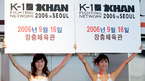 오는 9월 16일 장충체육관에서 벌어지는 K-1 파이팅 네트워크 KHAN 2006 in seoul 대회서 이종격투기 데뷔전을 치를 전 프로복싱 WBA 세계챔피언 최용수가 11일 저녁 서울 동대문 두산타워 야외 무대에서 출정식을 가졌다. 'KHAN 걸'이 섹시한 포즈를 취하고 있다./주지영 기자 jj0jj0@osen.co.kr...