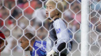 12일 서울 상암월드컵구장에서 벌어진 '2006 하나은행 FA컵 전국 축구선수권대회' FC 서울과 수원 삼성의 8강전서 치열한 접전 끝에 수원이 승부차기로 승리했다. 후반전 크로스를 골로 연결시킨 수원의 실바와 골을 허용한 서울 골키퍼 김병지의 명암이 표정에서 교차되고 있다./상암=손용호 기자spjj@osen.co.kr...