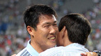 12일 서울 상암월드컵구장에서 벌어진 '2006 하나은행 FA컵 전국 축구선수권대회' FC 서울과 수원 삼성의 8강전서 치열한 접전 끝에 수원이 승부차기로 승리했다. 후반전 선제골을 넣은 실바를 김남일이 축하해주고 있다./상암=손용호 기자spjj@osen.co.kr [Copyright ⓒ 한국 최고의 스포츠 엔터테인먼트 전문 미디어...