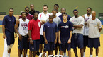 '비타 500 월드 바스켓볼 챌린지 2006' 에 출전하는 미국 남자농구 대표팀이 12일 오전 서울 방이동의 창원 LG 세이커스 체육관에서 국내 첫 훈련을 가졌다. 훈련을 하던 미국 대표선수들이 참관하던 한국 청소년대표 선수들과 함께 다양한 포즈를 취하고 있다./주지영 기자jj0jj0@osen.co.kr [Copyright ⓒ 한국...