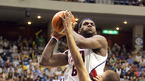 13일 잠실체육관에서 벌어진 '비타 500 월드바스켓볼챌린지 2006' 미국-리투아니아전 4쿼터 막판 미국의 르브론 제임스가 긴 체공 시간을 이용한 더블 클러치로 레이업슛을 시도하고 있다./잠실체=손용호 기자spjj@osen.co.kr [Copyright ⓒ 한국 최고의 스포츠 엔터테인먼트 전문 미디어...