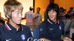 오는 16일 대만의 타이베이서 벌어지는 아시안컵 예선 원정에 나설 국가대표 선수들이 13일 오전 파주 NFC로 재소집됐다. 오후에 가진 집단 인터뷰에서 일본파인 김정우(왼쪽)와 김진규가 이야기를 나누고 있다./파주=박영태 기자 ds3fan@osen.co.kr [Copyright ⓒ 한국 최고의 스포츠 엔터테인먼트 전문 미디어...