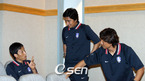 오는 16일 대만의 타이베이서 벌어지는 아시안컵 예선 원정에 나설 국가대표 선수들이 13일 오전 파주 NFC로 재소집됐다. 인터뷰를 끝낸 고참 김상식 안정환 김영철(왼쪽부터)이 강당 한쪽 구석에 모여 이야기를 나누고 있다./파주=박영태 기자 ds3fan@osen.co.kr [Copyright ⓒ 한국 최고의 스포츠 엔터테인먼트 전문 미디어...