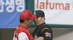 13일 잠실구장에서 열린 LG 트윈스와 한화 이글스의 경기 7회초 1사 1루서 한화 대타 데이비스가 삼진 당한 뒤 박근영 구심에게 판정에 대해 항의하고 난 다음 이번에는 유지훤 코치가 몸을 맞대고 언쟁을 벌이고 있다./잠실=김영민 기자ajyoung@osen.co.kr [Copyright ⓒ 한국 최고의 스포츠 엔터테인먼트 전문 미디어...