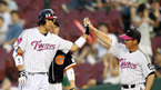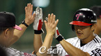 17일 잠실 야구장에서 열린 2006 프로야구 LG 트윈스와 롯데 자이언츠의 경기 5회초 2사 만루서 좌중간 싹쓸이 2루타를 날려 7-10을 만든 롯데의 이원석이 공필성 3코치와 하이파이브를 하고 있다./박영태 기자 ds3fan@osen.co.kr [Copyright ⓒ 한국 최고의 스포츠 엔터테인먼트 전문 미디어...