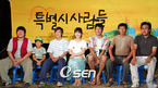 박철웅 감독의 데뷔작 '특별시 사람들'이 18일 오후 도곡동 타워팰리스 인근에 위치한 판자촌 오픈세트의 현장 공개를 했다. 무허가 판자촌에서 어렵게 살아가는 가족들 사이에서 벌어지는 갖가지 에피소드를 감동으로 엮어낼 가족 휴먼 드라마. 박효준 강산 서민우 유민 조한선 김갑수 등 출연진과 박철웅(왼쪽부터)감독이 기자 간담회를 하며 미소...