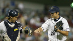 19일 잠실 야구장에서 열린 두산 베어스와 삼성 라이온즈의 경기 8회초 삼성의 공격을 무실점으로 막은 투수 김덕윤이 포수 홍성흔과 하이파이브를 하고 있다./잠실=김영민 기자ajyoung@osen.co.kr [Copyright ⓒ 한국 최고의 스포츠 엔터테인먼트 전문 미디어 OSEN(www.osen.co.kr) 무단전재 및 재배포 금지]