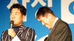 2006 삼성 하우젠 K-리그 올스타전 전야제가 19일 저녁 인천 송도 라마다 호텔에서 열렸다. 행사를 진행한 김정일 SBS 아나운서가 '월드컵 기간 중 차범근 감독 때문에 속이 많이 상했다'고 얘기하자 차 감독이 고개를 숙이며 웃고 있다./인천=손용호 기자spjj@osen.co.kr [Copyright ⓒ 한국 최고의 스포츠...