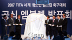 2007 FIFA U-17 월드컵조직위원회 창립총회 및 대회 엠블럼 발표회가 22일 낮 서울 웨스틴 조선호텔에서 열렸다. 왼쪽부터 성무용 천안시장, 이홍구 전 국무총리, 정동채 조직위원장, 김용서 수원시장, 박맹우 울산광역시장, 박양우 문화관광부 차관, 정몽준 대한축구협회장이 엘블럼을 제막하고 있다./주지영 기자 jj0jj0@osen.co.kr...