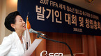 2007 FIFA U-17 월드컵조직위원회 창립총회 및 대회 엠블럼 발표회가 22일 낮 서울 웨스틴 조선호텔에서 열렸다. 손숙 전 환경부장관이 대회 조직위 발기 취지문을 낭독하고 있다./주지영 기자 jj0jj0@osen.co.kr [Copyright ⓒ 한국 최고의 스포츠 엔터테인먼트 전문 미디어 OSEN(www.osen.co.kr) 무단전재...