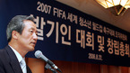 2007 FIFA U-17 월드컵조직위원회 창립총회 및 대회 엠블럼 발표회가 22일 낮 서울 웨스틴 조선호텔에서 열렸다. 정동채 대회 조직위원장이 인사말을 하고 있다./주지영 기자 jj0jj0@osen.co.kr [Copyright ⓒ 한국 최고의 스포츠 엔터테인먼트 전문 미디어 OSEN(www.osen.co.kr) 무단전재 및 재배포 금지]