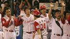 프로야구 첫 개인 통산 200승에 단 1승을 남겨두고 3차례 쓴맛을 본 송진우가 22일 대전 구장에서 200승 4수째에 나섰다. 0-0이던 한화의 5회말 1사 만루서 김태균의 2타점 좌전안타 때 홈까지 밟은 2루주자 고동진의 득점을 송진우(왼쪽에서 2번째) 등 동료들이 환영해주고 있다./대전=김영민 기자ajyoung@osen.co.kr...