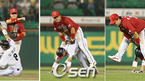 24일 잠실 야구장에서 열린 LG 트윈스와 KIA 타이거즈 경기 LG의 6회말 1사 1루 정의윤의 유격수 땅볼 때 KIA 2루수 손지환이 1루주자 오태근을 2루에서 포스아웃시키고 1루로 송구한 뒤 몸에 올라타고 있다./잠실=김영민 기자ajyoung@osen.co.kr [Copyright ⓒ 한국 최고의 스포츠 엔터테인먼트 전문 미디어...