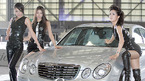 메르세데스 벤츠 코리아는 24일 김포공항 대한항공 항공기 격납고에서 안전성 편리성 주행성능이 향상된 다이내믹 중형세단 뉴 제너레이션 E-CLASS를 국내에 선보였다. 모델들이 뉴 제너레이션 E-CLASS와 어울리는 다이내믹한 의상을 입고 와이어에 매달리는 등 역동적인 모습을 보여줬다. 한 모델이 섹시한 포즈를 취하고 있다./ 김포공항=손용호...