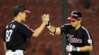 25일 잠실야구장에서 열린 2006 프로야구 두산 베어스와 LG 트윈스의 경기 7회초 1사 1루에서 4번 박용택이 우월 홈런을 날리고 홈인한 후 양승호 감독대행의 축하를 받고 있다./잠실=박영태 기자 ds3fan@osen.co.kr [Copyright ⓒ 한국 최고의 스포츠 엔터테인먼트 전문 미디어 OSEN(www.osen.co.kr) 무단전재...