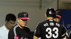 25일 잠실야구장에서 열린 2006프로야구 두산 베어스와 LG 트윈스의 경기 5회말 2사까지 잡고 6실점한 LG의 선발투수 베로커가 차명석 투수코치에게 공을 넘기고 마운드를 내려가고 있다./잠실=박영태 기자 ds3fan@osen.co.kr [Copyright ⓒ 한국 최고의 스포츠 엔터테인먼트 전문 미디어 OSEN(www.osen.co.kr)...