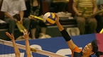 26일 잠실체육관에서 벌어진 2006 월드 그랑프리 세계 여자배구 한국-일본전서 한국의 한송이가 일본의 더블 블로킹을 이용, 터치 아웃에 성공하고 있다./잠실체=김영민 기자ajyoung@osen.co.kr [Copyright ⓒ 한국 최고의 스포츠 엔터테인먼트 전문 미디어 OSEN(www.osen.co.kr) 무단전재 및 재배포 금지]