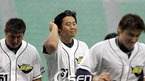 27일 잠실 야구장에서 벌어진 두산 베어스와 LG 트윈스의 경기는 1회말 두산의 공격 중 내린 비로 연기됐다. 장원진 등 홈팀 두산 선수들이 팬들에게 인사한 뒤 비를 맞으며 시원한 표정을 짓고 있다./ 잠실=손용호 기자spjj@osen.co.kr [Copyright ⓒ 한국 최고의 스포츠 엔터테인먼트 전문 미디어...