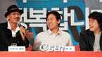 올 추석에 개봉될 예정인 영화 '라디오스타' 제작발표회가 31일 오후 서울 프라자 호텔에서 열렸다. 노브레인의 정재환이 이준익 감독의 전작 '왕의 남자'를 세번이나 봤는데 '라다오 스타'에 출연 섭외를 받고 몰래 카메라인줄 알았다고 이야기 하자 이준익 감독, 안성기, 박중훈(왼쪽부터) 웃음보를 터뜨리고...