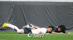 9월 2일 이란과 아시안컵 예선전을 갖는 대표팀이 31일 소집돼 서울 상암 월드컵경기장 보조구장서 훈련을 가졌다. 박지성이 볼을 다투다 김동진과 가볍게 부딪친 뒤 아픈 표정을 짓고 있다./상암=김영민 기자ajyoung@osen.co.kr [Copyright ⓒ 한국 최고의 스포츠 엔터테인먼트 전문 미디어 OSEN(www.osen.co.kr)...