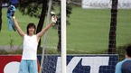 대만과의 아시안컵 예선을 하루 앞둔 5일 태극전사들은 오전 훈련 후 오후에는 '축구 골프' 게임으로 훈련을 대신했다. 축구공으로 돌아가며 9개의 깃대를 맞히는 게임으로 축구장 3개면을 이용, 진행됐다. 설기현 백지훈과 한 조를 이룬 박지성이 한 번에 깃대를 맞혀 '홀인원'을 기록한 후 좋아하고 있다./파주=손용호...