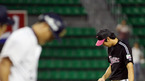 대만과의 아시안컵 예선을 하루 앞둔 5일 태극전사들은 오전 훈련 후 오후에는 '축구 골프' 게임으로 훈련을 대신했다. 축구공으로 돌아가며 9개의 깃대를 맞히는 게임으로 축구장 3개면을 이용, 진행됐다. 홍명보 코치, 이운재와 조를 이룬 김영광이 마지막 홀에서 이겼다며 손을 번쩍 쳐들고 있다./파주=손용호 기자spjj@osen.co.kr...