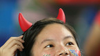 2007 아시안컵 예선 한국과 대만의 경기는 설기현이 포문을 연 뒤 정조국의 해트트릭으로 마무리되며 한국이 8-0 대승을 거두었다. 한 여고생이 얼굴에 '지성'이라고 페이스 페인팅을 하고 응원하고 있다./수원=손용호 기자spjj@osen.co.kr [Copyright ⓒ 한국 최고의 스포츠 엔터테인먼트 전문 미디어...