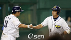 6일 잠실야구장에서 두산 베어스와 LG트윈스의 첫 더블헤더가 열렸다. 더블헤더 2차전 두산의 5회말 1사 3루 3번 안경현이 좌중월 홈런을 날리고 홈인하며 김동주와 하이파이브 하고 있다./잠실=박영태 기자 ds3fan@osen.co.kr [Copyright ⓒ 한국 최고의 스포츠 엔터테인먼트 전문 미디어 OSEN(www.osen.co.kr)...