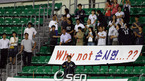 7일 잠실야구장에서 열린 2006프로야구 두산 베어스와 현대 유니콘스의 경기 5회 도중 우측 외야석에 손시헌의 아시안게임 대표 탈락에 대한 항의로 두산 팬들이 'Why not 손시현(손시헌의 오기)...??' 등 두 개의 플래카드를 걸고 응원하고 있다./잠실=박영태 기자 ds3fan@osen.co.kr [Copyright ⓒ 한국...