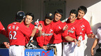 10일 잠실야구장에서 열린 LG 트윈스와 SK 와이번스 경기 8회초 2사 2루 2-2 동점 상황에서 최정이 3루 강습 역전 안타때 2루 주자 박재홍이 득점을 올리며 동료들로 부터 축하를 받고 있다./잠실=김영민기자ajyoung@osen.co.kr [Copyright ⓒ 한국 최고의 스포츠 엔터테인먼트 전문 미디어 OSEN(www.osen.co.kr)...