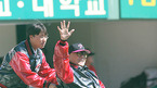 10일 잠실야구장에서 열린 LG 트윈스와 SK 와이번스 경기 전 프로레슬러 김일씨가 시구자로 나오면서 관중에게 인사를 하고 있다./잠실=김영민기자ajyoung@osen.co.kr [Copyright ⓒ 한국 최고의 스포츠 엔터테인먼트 전문 미디어 OSEN(www.osen.co.kr) 무단전재 및 재배포 금지]