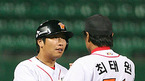 14일 문학 야구장에서 열린 2006 프로야구 SK 와이번스와 한화 이글스의 경기 8회말 선제 결승타를 치고 나간 뒤 1사 2루서 김재현의 볼넷 때 3루 도루에 성공한 박재홍이 최태원 3루코치의 격려를 받고 있다./인천=김영민 기자 ajyoung@osen.co.kr [Copyright ⓒ 한국 최고의 스포츠 엔터테인먼트 전문 미디어...