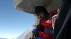 유상범 대원이 9월 9일 해발 6600m에 위치한 첫 번째 비박지에서 아침을 맞고 있다. 밤새 유 대원의 체온을 지켜줬을 물통(자기 전 눈을 녹여 끓여서 물통에 넣는다)이 인상적이다. 좌측 브리구판스 너머로 햇살이 비치지만 북벽은 아직도 그늘이다./원정대 제공. [Copyright ⓒ 한국 최고의 스포츠 엔터테인먼트 전문 미디어...