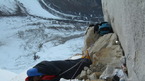 두 대원은 정상부 아래 최난구간인 블랙피라미드를 통과하기 전 두 번의 비박을 했다. 유상범 대원의 아래쪽으로 탈레이사가르 빙하가 보인다. 비박지와 빙하사이는 해발고도로 1600m 정도가 된다./원정대 제공. [Copyright ⓒ 한국 최고의 스포츠 엔터테인먼트 전문 미디어 OSEN(www.osen.co.kr) 무단전재 및 재배포 금지]