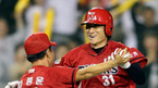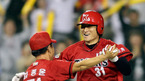 2006프로야구 4강 티켓 확보에 결정적 영향을 미칠 수 있는 두산 베어스와 KIA 타이거즈의 주말 3연전 첫 경기가 16일 잠실야구장에서 열렸다. 6-2로 이겨 4위에 복귀한 KIA의 서정환 감독이 승리의 주역 이현곤의 등을 두드려 주고 있다./잠실=박영태 기자 ds3fan@osen.co.kr [Copyright ⓒ 한국 최고의 스포츠...
