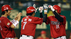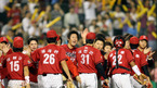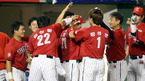 2006프로야구 4강 티켓 확보에 결정적 영향을 미칠 수 있는 두산 베어스와 KIA 타이거즈의 주말 3연전 첫 경기가 16일 잠실야구장에서 열렸다. KIA가 3-2로 앞서 있던 8회초 1사 1,2루 9번 이현곤이 좌중월 3점 홈런을 날리고 덕아웃에서 선수들의 환영을 받고 있다./잠실=박영태 기자 ds3fan@osen.co.kr [Copyright...