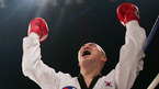 'K-1 파이팅 네트워크 칸 2006 서울' 대회가 16일 오후 장충체육관에서 열렸다. 스페셜파이트서 태권도 선수 출신 박용수가 일본의 가라테 선수 출신 와타나베 다이스케를 KO로 꺾은 뒤 환호하고 있다./장충체=주지영 기자 jj0jj0@osen.co.kr [Copyright ⓒ 한국 최고의 스포츠 엔터테인먼트 전문 미디어...
