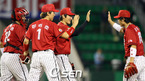 2006프로야구 4강 티켓 확보에 결정적 영향을 미칠 수 있는 두산 베어스와 KIA 타이거즈의 주말 3연전 첫 경기가 16일 잠실야구장에서 열렸다. 두산에 6-2로 이겨 4위로 복귀한 KIA 선수들이 경기 후 기뻐하고 있다./잠실=박영태 기자 ds3fan@osen.co.kr [Copyright ⓒ 한국 최고의 스포츠 엔터테인먼트 전문 미디어...