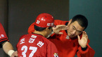 2006프로야구 4강 티켓 확보에 결정적 영향을 미칠 수 있는 두산 베어스와 KIA 타이거즈의 주말 3연전 첫 경기가 16일 잠실야구장에서 열렸다. KIA 7회초 1사 만루 4번 조경환이 중견수 희생플라이로 타점을 올린뒤 덕아웃에서 선발투수였던 김진우와 하이파이브 하고 있다./잠실=박영태 기자 ds3fan@osen.co.kr [Copyright...